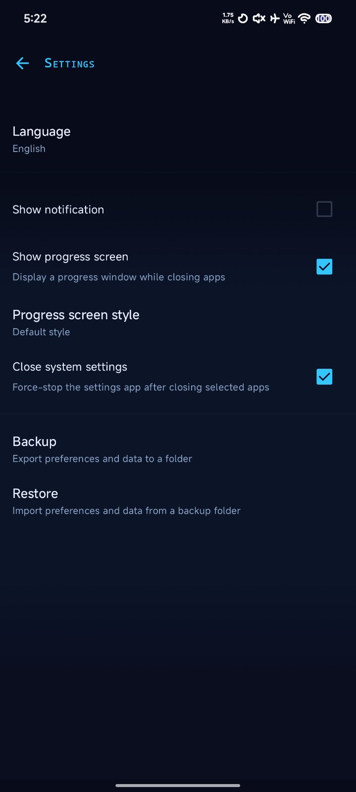 Exception List – Choose apps that should not be closed during app-closing actions.