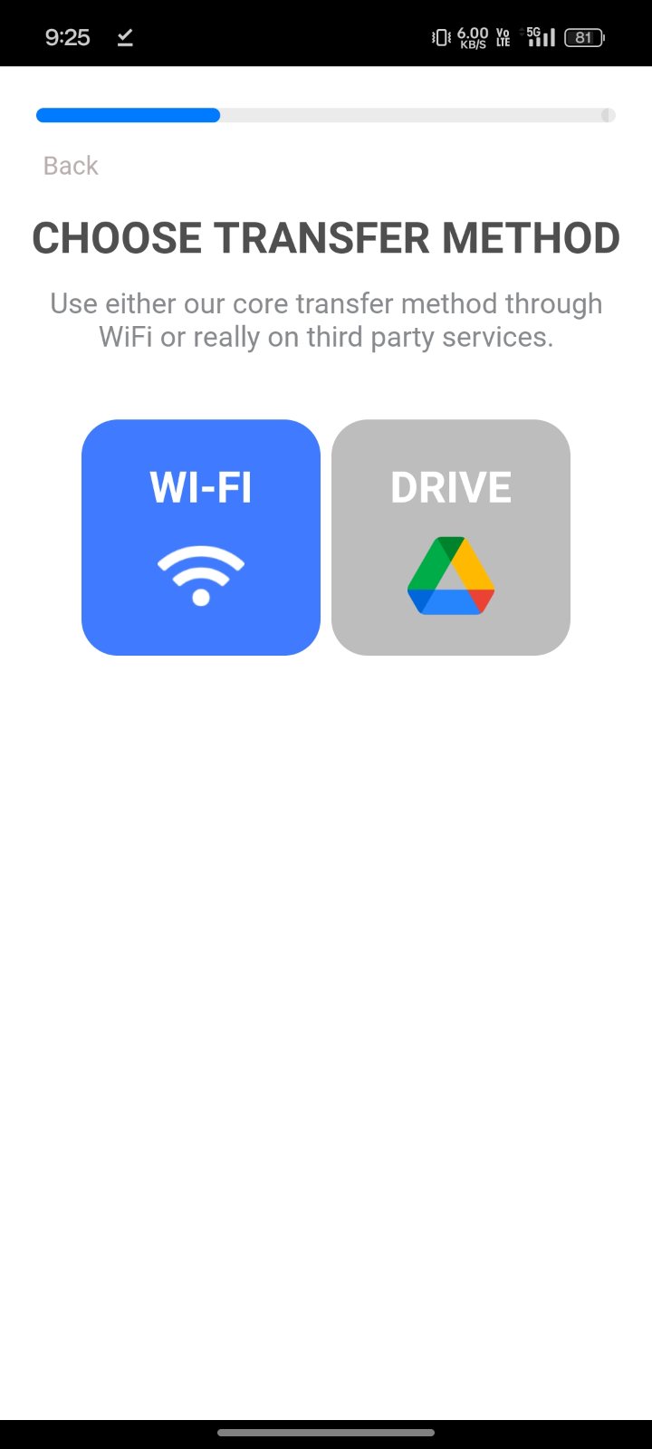 Ensure both devices are connected to the same WiFi network and then run the app. Tranfer and enjoy this data backup available.
