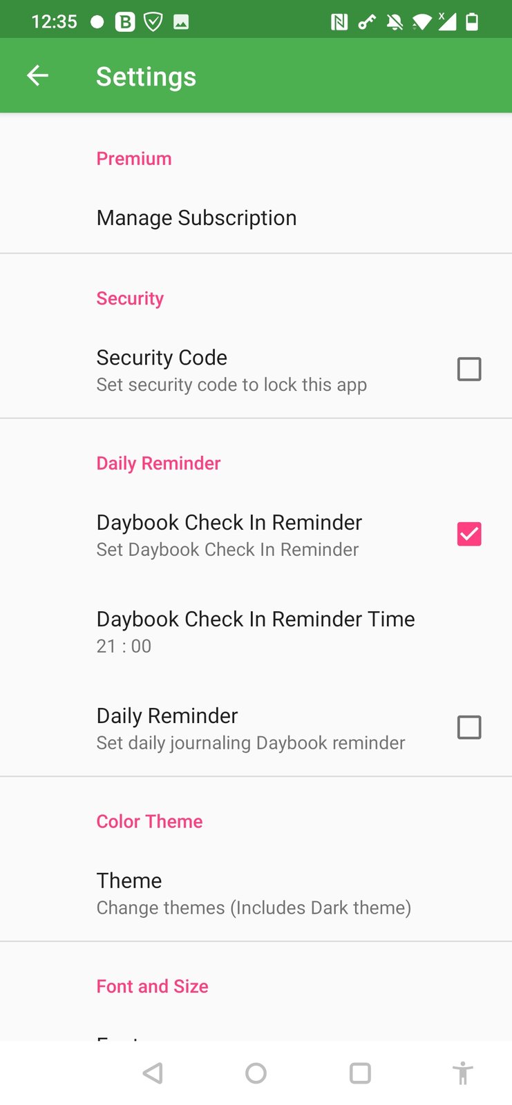 Daybook is a FREE, passcode-protected personal diary, journal and notes app available for Android. Daybook helps to record activities, experiences, thoughts, and ideas throughout a day. It lets you organize your created diary/journal entries or notes from the past in the easiest way.