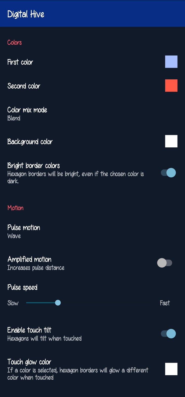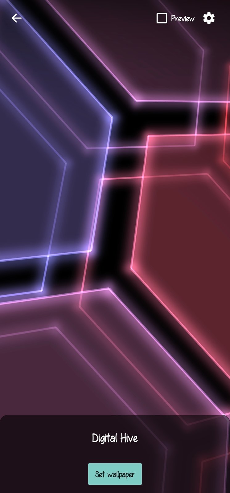Overview: This live wallpaper displays a 3D grid of glowing, subtly pulsing hexagons. Select any color you like, or a mixture of two colors! Touch to make the hexagons tilt or glow.