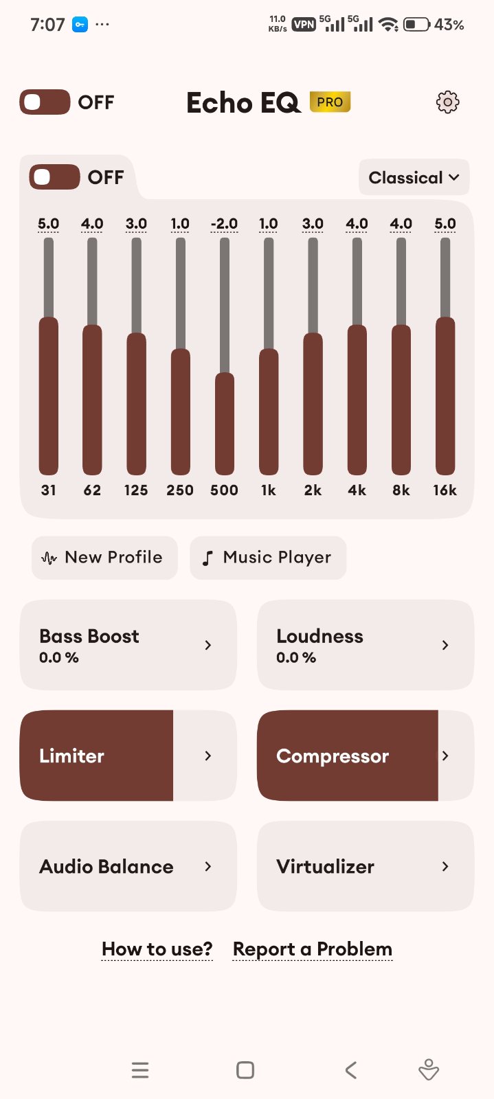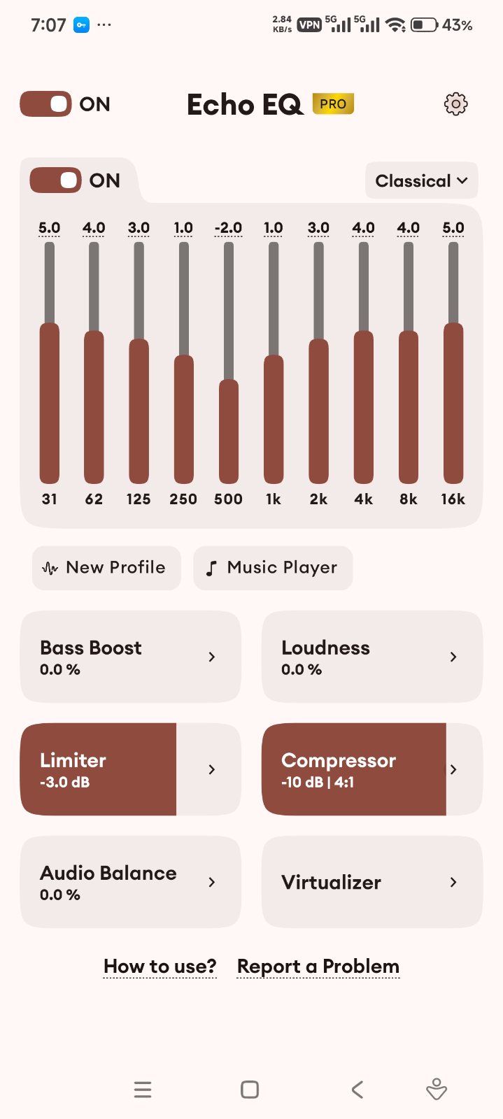 Open Echo Equalizer and customize equalizer, bass boost, volume boost, or loudness boost settings.
