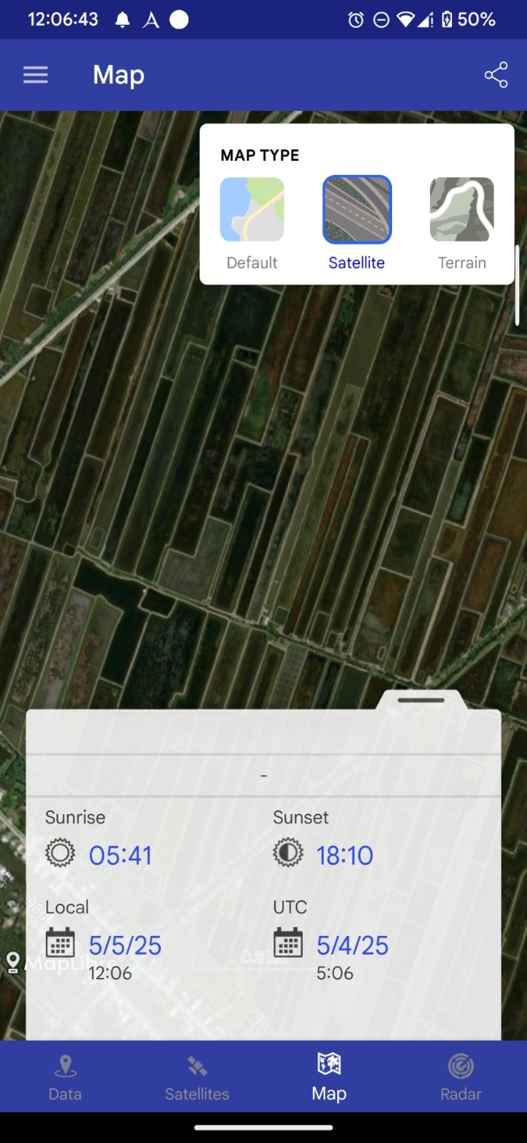 With this app you can check sunrise and sunset time of the day, local UTC time, position on the world map and many others data.