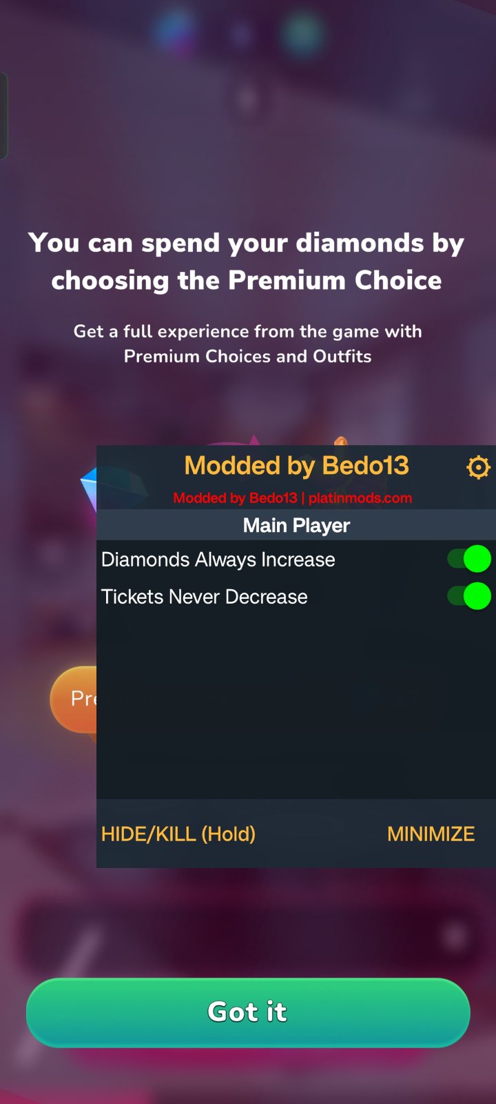 The stories don't appear, I thought it was the game itself but I downloaded it on another cell phone and if they show me the stories it seems like it's the mod...it's a shame.