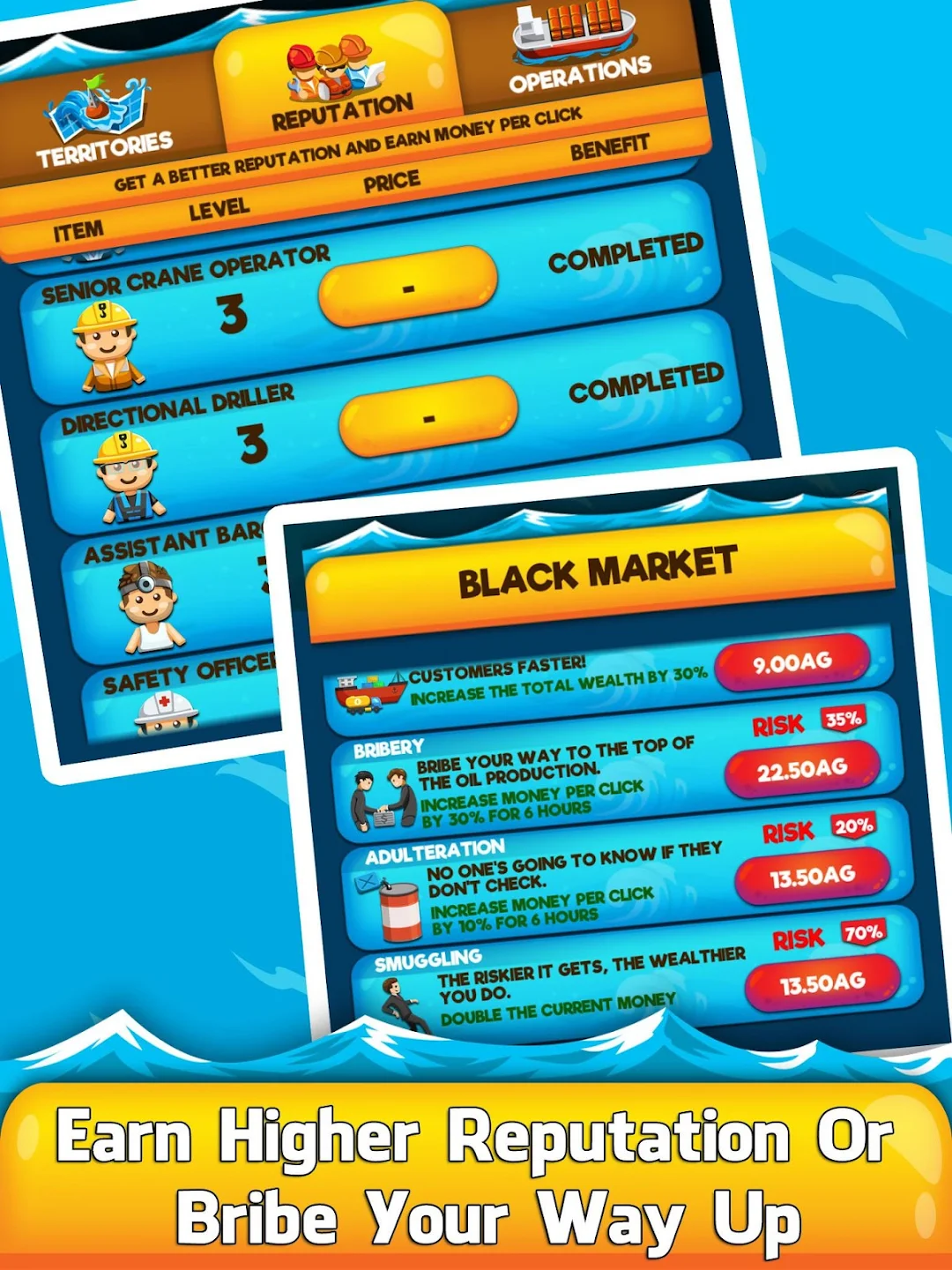 Be an Oil Tycoon by tap clicker managing your gold oil wells & your idle profit!