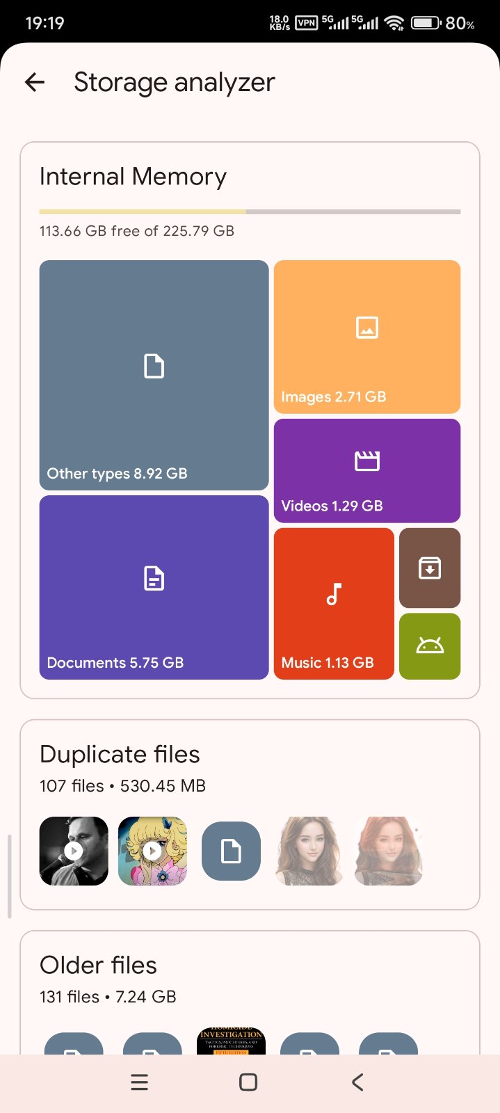 • Analyze storage - manage files taking too much space on your device