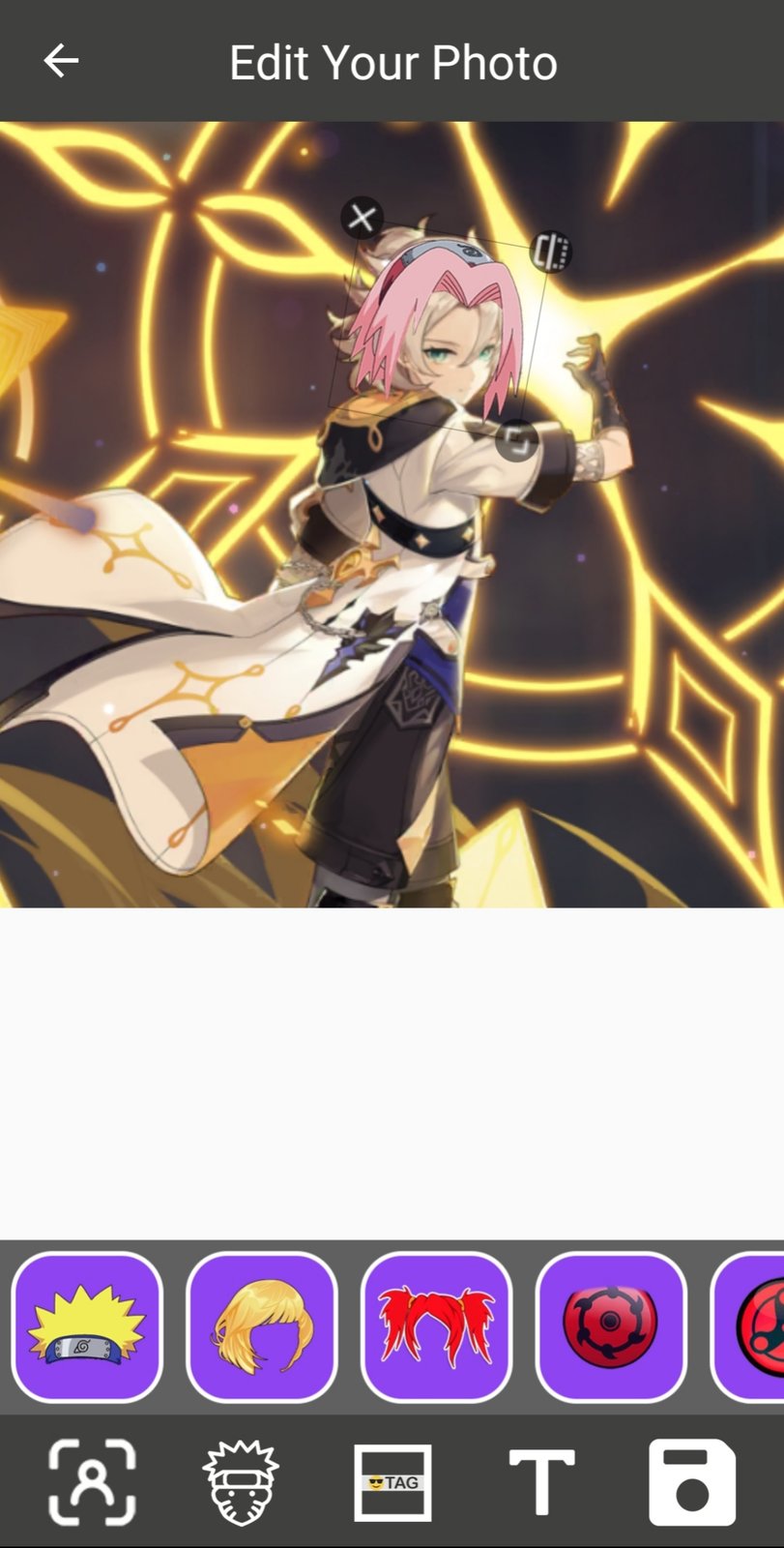 This Ninja application allows you easy transform yourself and your friends into a great ninja and legendary anime ninjas. Here you can choose from huge stickers collection and became hokage, sasuke, gara, sand ninja, akatsuki any great ninja. Here are also dragon goku stickers just play a little with effects and get cool anime cosplay photos for your social media.