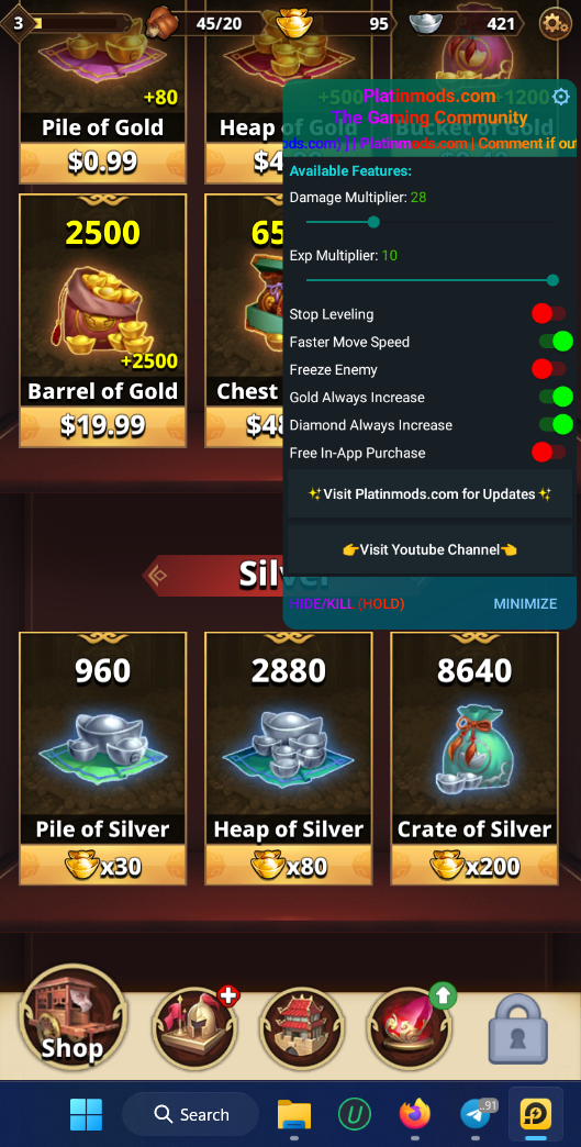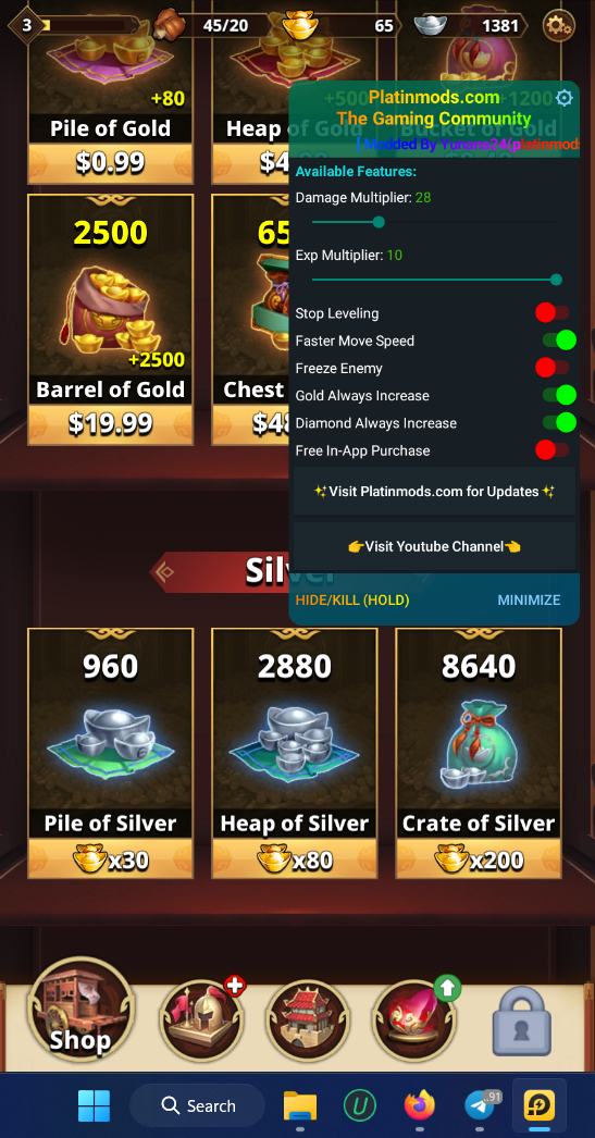 I beg to differ. Damage and exp are working as intended, gem applies on chest but not on gold, , gold increased after I level up my skill. Free iap is also showing successful message.