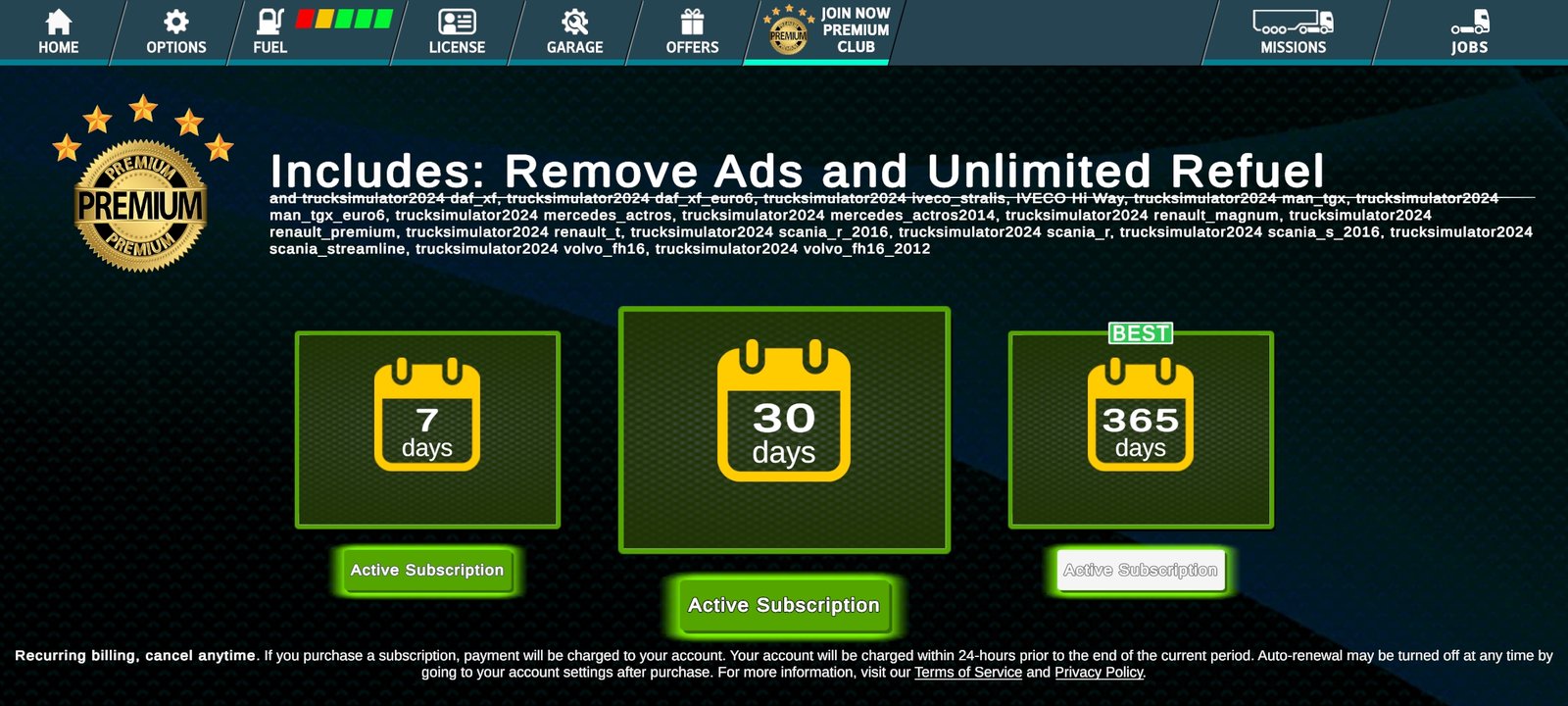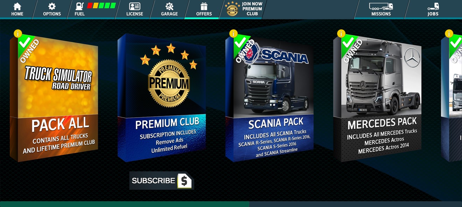 Free purchases for real money (does not work with truck sets; this feature requires Internet access and authorization in Google services).